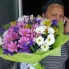 Букет из хризантем, альстромерий и ирисов в натуральной упаковке